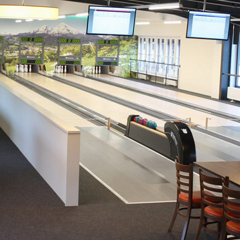 Funk Mini-Bowlingbahnen bieten die Geschwindigkeit und Effizienz, die viele an den Bowlingprodukten von Funk schätzen. Insbesondere die bekannte String Pinsetter-Technologie von Funk wird in den Mini-Bowling-Projekten eingesetzt und bietet ein zuverlässiges und schnelles Spiel. Wie auch immer Ihr Geschäft aussieht, wir können das Design an Ihr bestehendes Erscheinungsbild anpassen und gleichzeitig den Raum für das bestmögliche Bowling-Erlebnis maximieren.