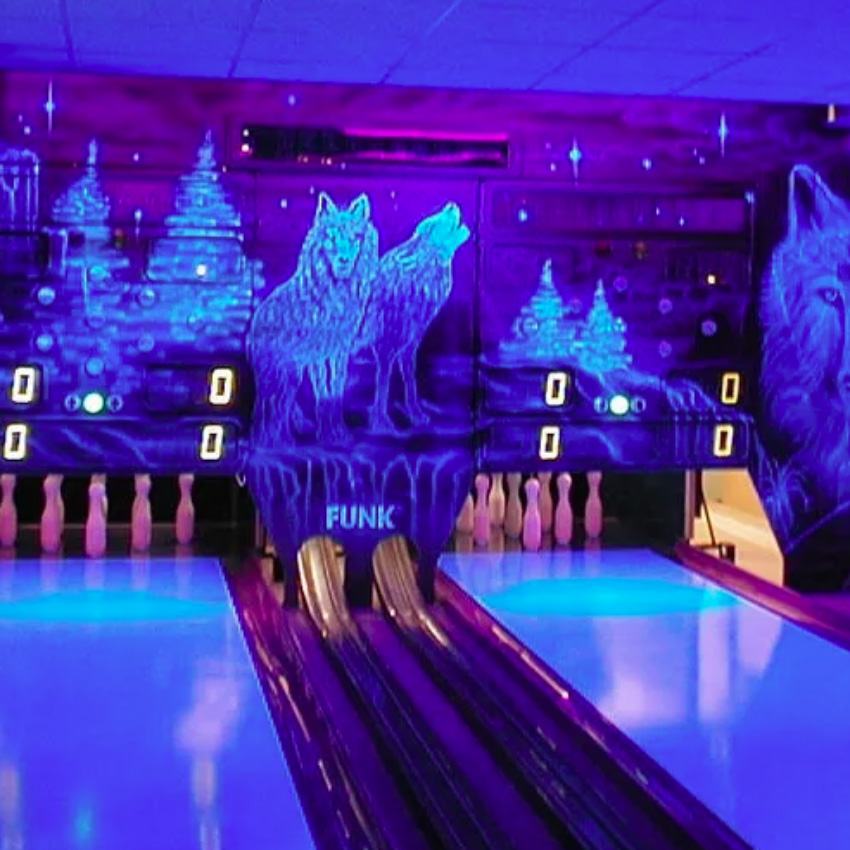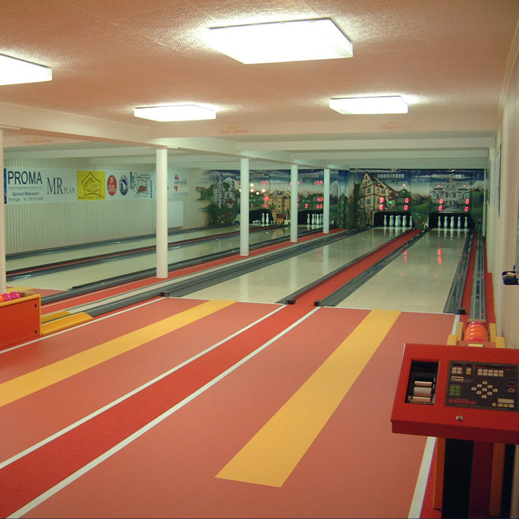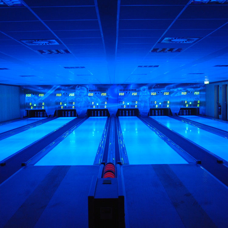 The HPL surfaces are approved by the DKB (Deutscher Kegler- und Bowlingbund). The high-pressure laminate panels have a thickness of 10 mm. The melamine resin surface ensures low noise pollution on impact and an extremely long service life. A glow-in-the-dark effect of the running surface in combination with matching lighting technology turns your Nine-pin bowling alley into a futuristic attraction.